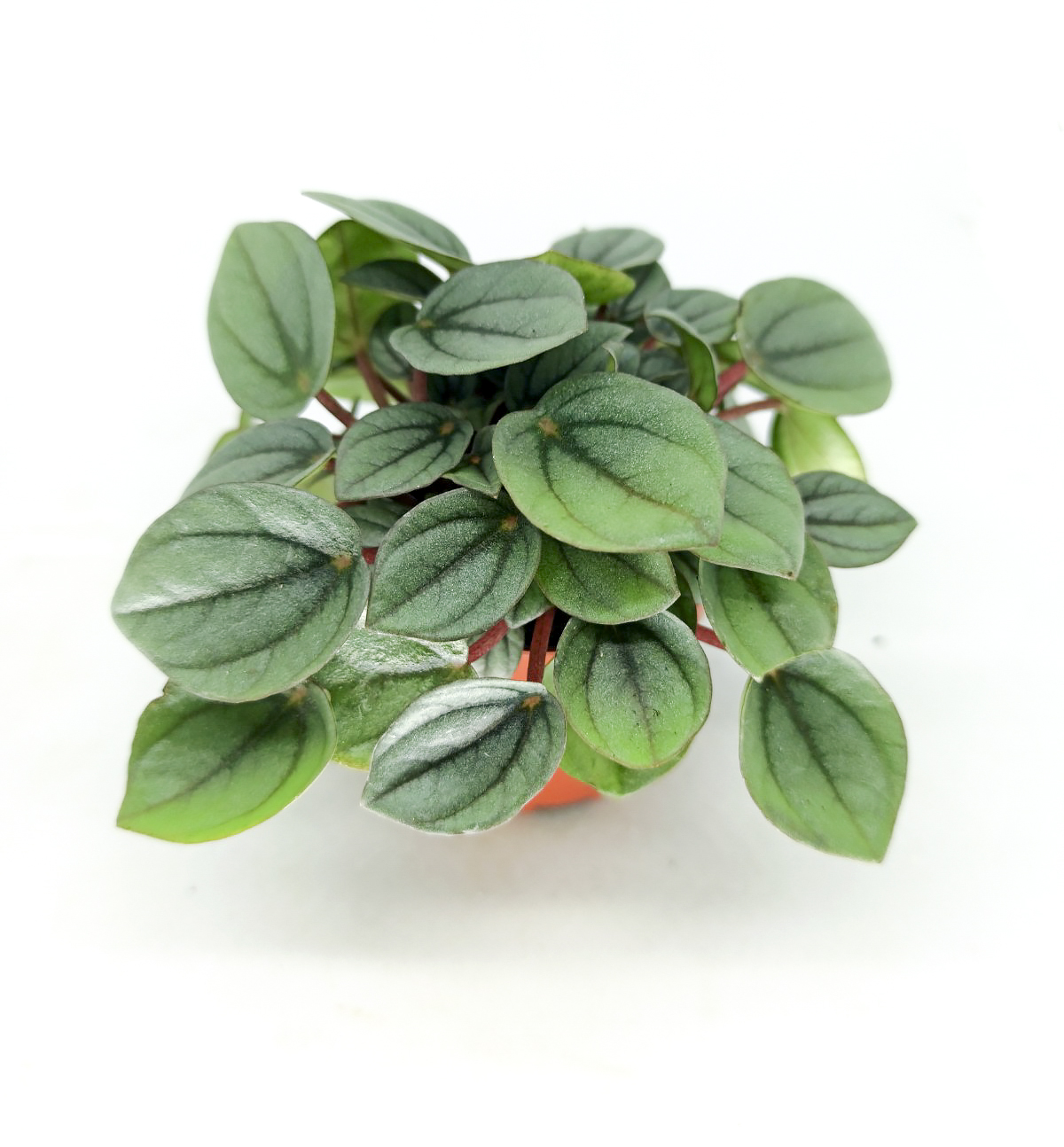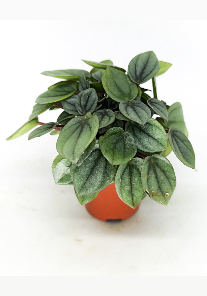 La peperomia milano es una de las plantas de interior más populares. Las peperomias pertenecen a la familia Piperaceae, originarias de América del Sur. Sus hojas son pequeñas, verde-azuladas y redondas, con una nervadura muy marcada de color verde oscuro. Presenta inflorescencias en forma de espiga. Ideal para decorar interiores y para terrarios.